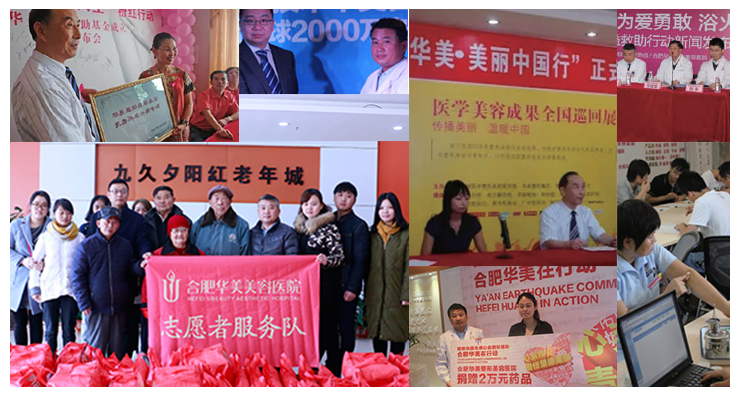 華美自建院以來一直熱心公益:心系雅安地震,華美愛心捐款;美麗中國行援助耳部畸形兒童;華美公益救助燒傷母親王阿姨;情系玉樹災(zāi)區(qū)華美愛心公益捐款;"暖冬公益"合肥華美新年敬老慰問活動等等,受到社會的認(rèn)可與好評。